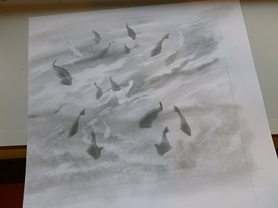 - The fragments of paper are used again, this time they are outlined using powdered graphite according to randomly allocated co-ordinates