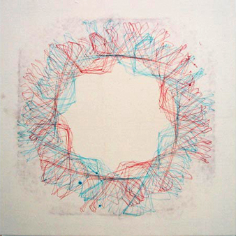 This is a playful investigation into recording movement. An office chair is adapted to hold felt tipped pens which trace its movement around a space or a canvas.