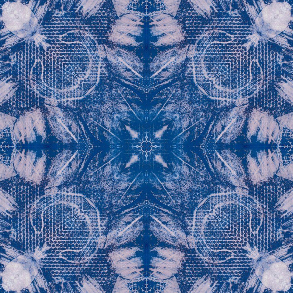 Claire and Rebecca designed a series of printed blankets from the images created by those who took part. For some of the blankets this involved creating cyanotype prints with their rubbings – a form of printing that is created by the light of the sun changing the colour of photosensitive paper. The creations by the participants were selected, combined, digitally collaged and printed as a cosy fleece blanket. The collections of blankets connect the individual participants with the groups that supported them, with the potential for all the blankets from that collection to be laid out next to each other to form a larger space – symbolic of the spaces created by the organisations who supported their community during the isolated times of 2020 and 2021.