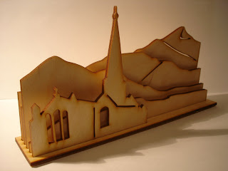 In order to understand the capabilities of the equipment I developed this model out of plywood – somewhat a return to subject matter I painted around 12 years ago. The scene is based on views in Keswick.